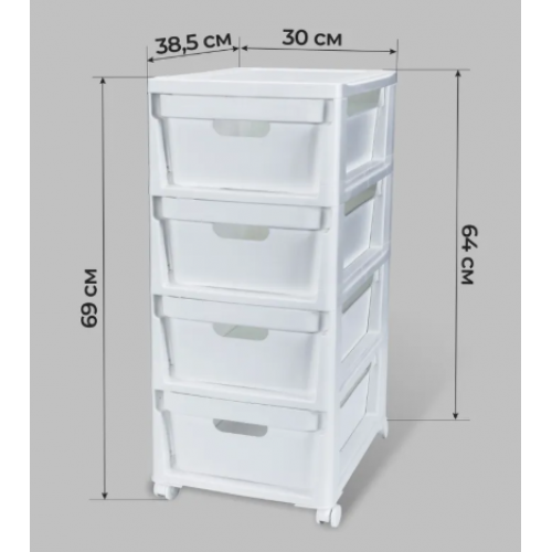 Комод на колесах luxe, 4 ящика, 300х385х690 мм (белый)/Бытпласт/1/1